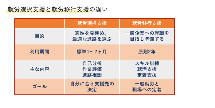 「選ぶ」ための就労選択支援、「準備する」ための就労移行支援